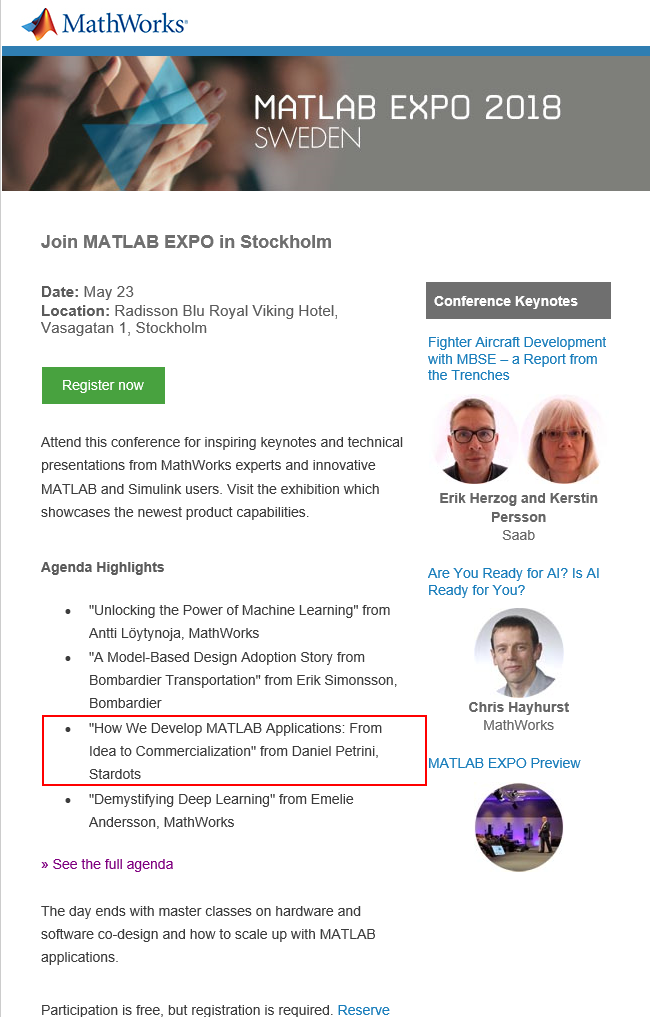 Stardots to give a presentation at MATLAB EXPO Stockholm 23/5