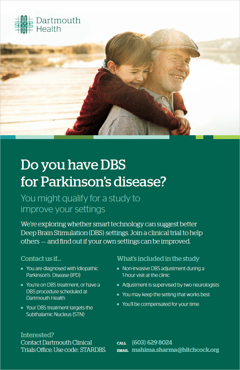 Recruitment poster for Stardots ANLIVA DBS clinical trials in Dartmouth Health, NH, USA