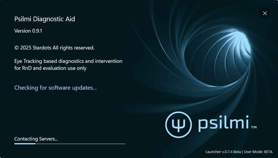The Psilmi launcher which takes care of software updates, licensing, login and starting the medical device.
